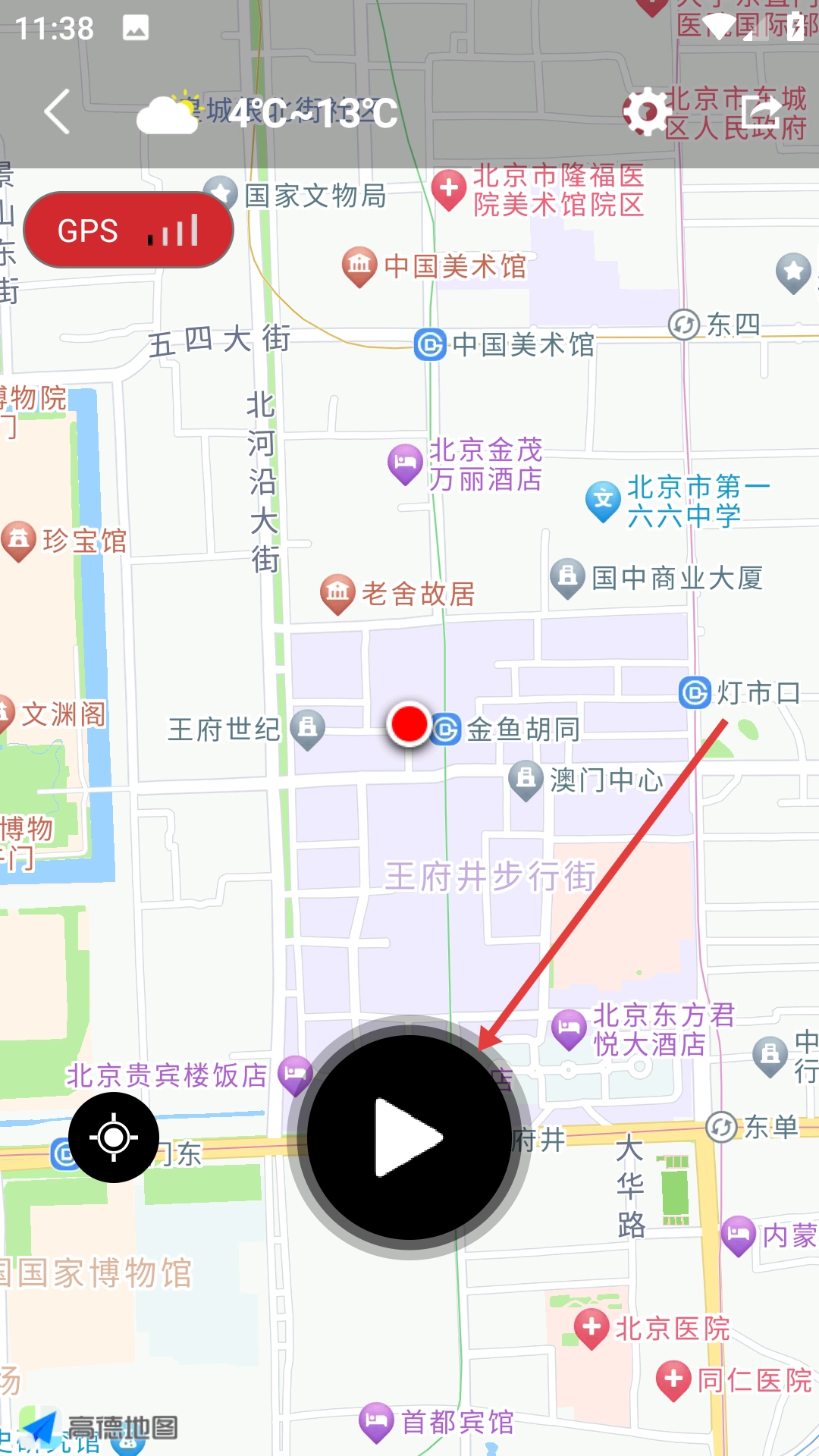 在运动地图页面点击播放按钮,开始记录运动轨迹。