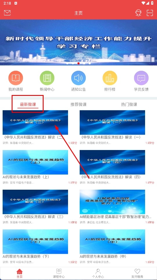在主页的【最新微课-分类标签】板块中,您可以点击像《中华人民共和国反洗钱法》解读(二)这类课程来开展学习。