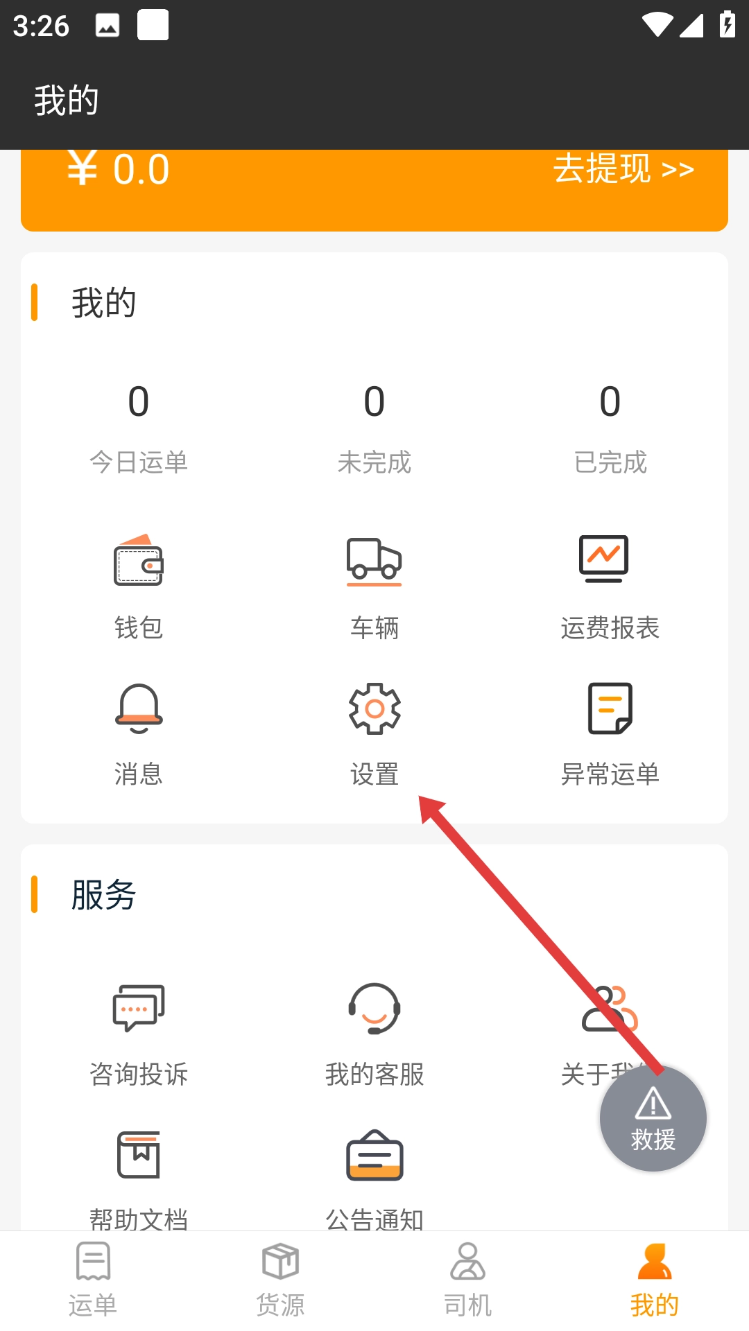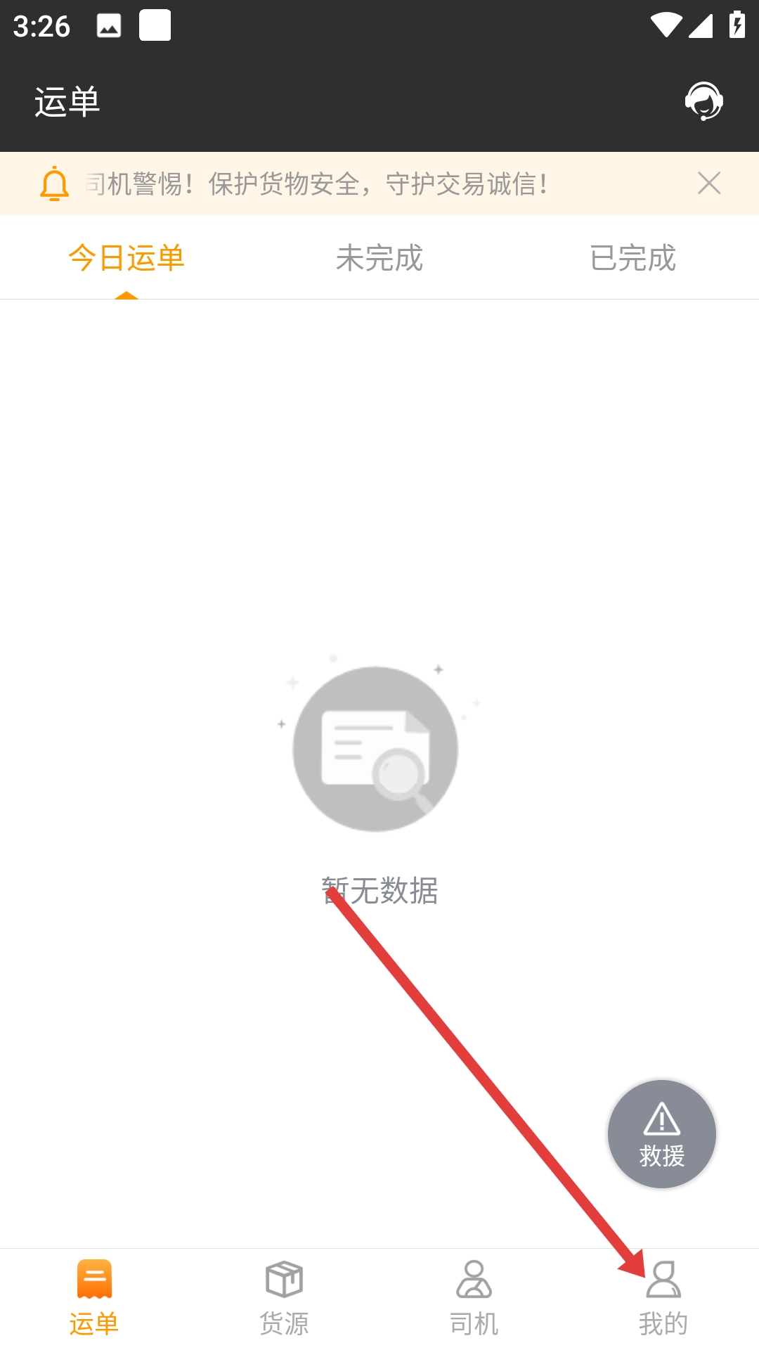 在货运类运单页面,点击右下角的【我的】选项,即可进入个人中心页面。