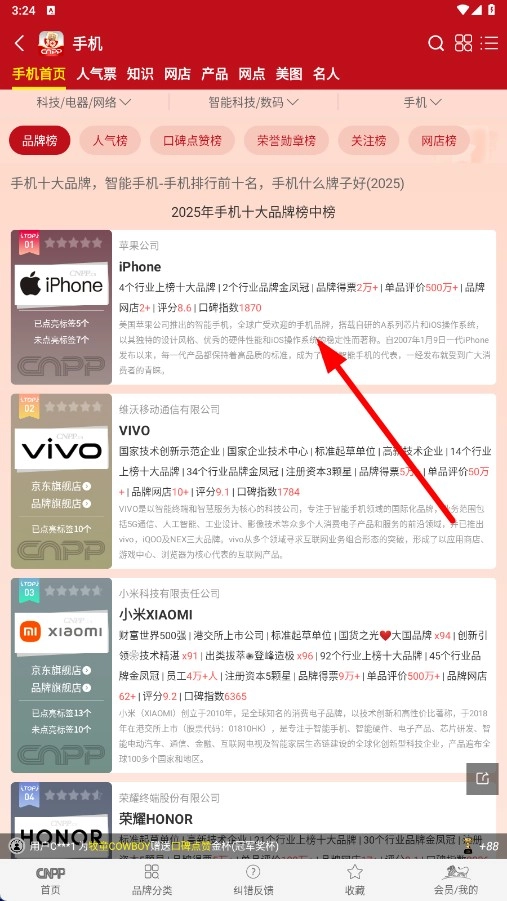 在手机品牌页面,挑选自己感兴趣的品牌(例如“iPhone”),然后进入该品牌的详情页面。