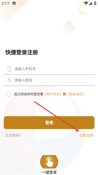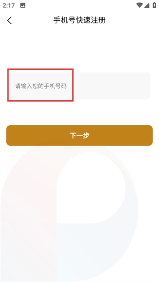 在手机号快捷注册界面填写手机号码后,点击【下一步】按钮。