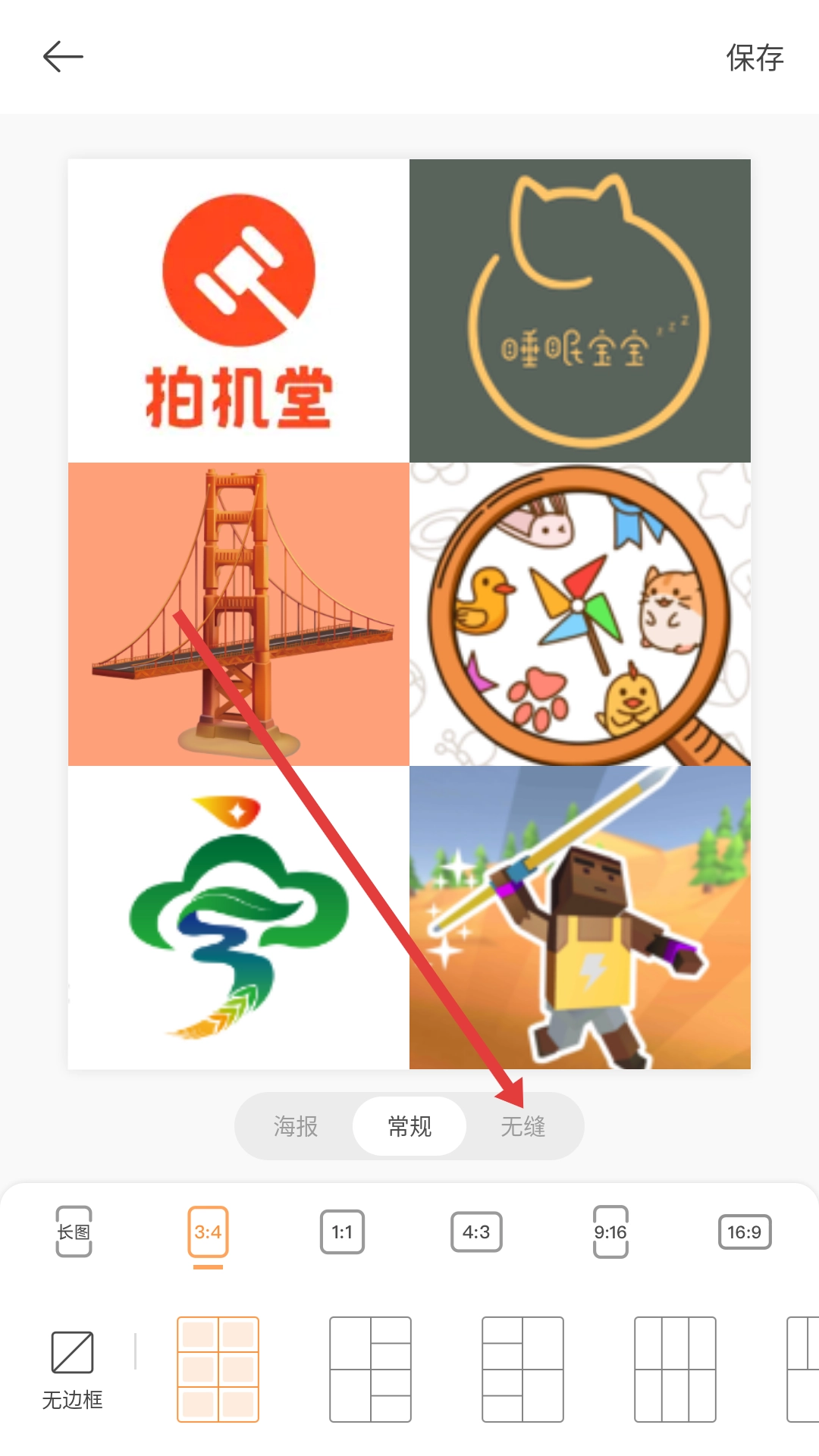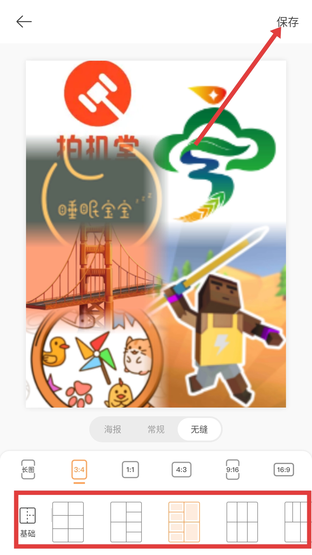 编辑完成后,点击【保存】按钮,即可完成拼图的保存操作。