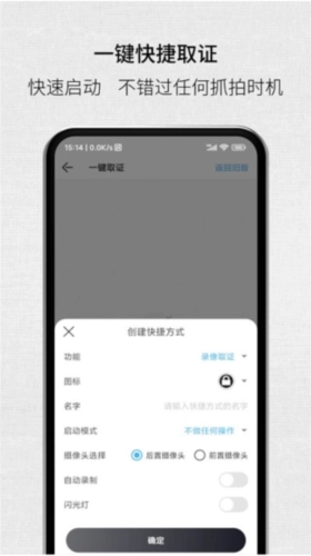 一键取证功能支持在桌面创建快捷方式,用户可预先配置好需要的取证功能选项,点击该快捷方式即可直接进入取证拍摄界面,以便迅速处理突发状况。