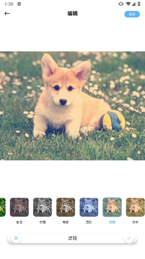 在编辑界面里浏览并挑选心仪的滤镜效果,编辑好之后,点击“保存”按钮。