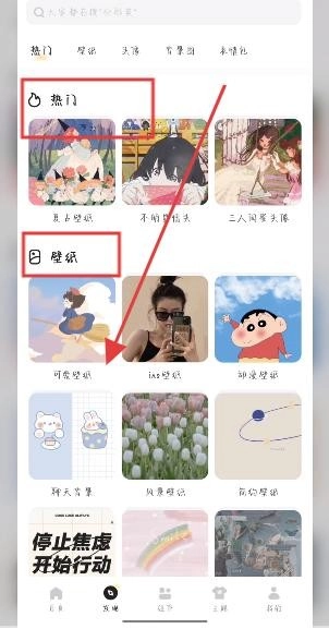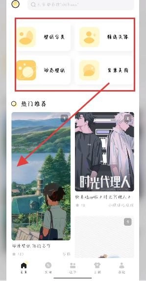以进入壁纸相关页面为例,在新界面里设有热门、壁纸等分类标签,点击相应标签后,可浏览下方呈现的各类壁纸资源,从中挑选出自己喜欢的内容。