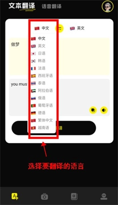 用户点击上面还可以选择要翻译的语言。