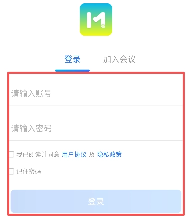 1、在手机上打开会易通,输入自己的账号即可登录。