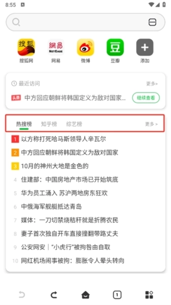 3、点击顶部的搜索框,输入关键词或者网址,即可快速得到结果