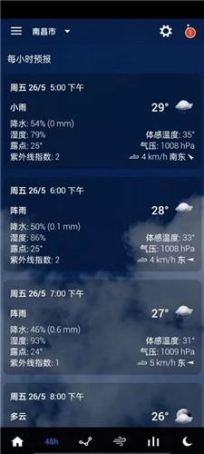 3、点击48h板块,即可查看当前城市未来48小时内每小时的天气情况