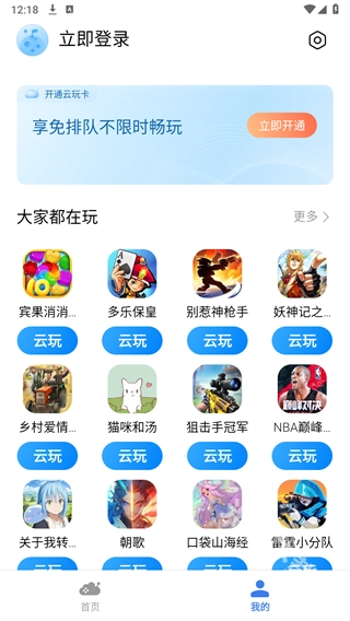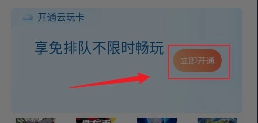 3、成功登录账号后,点击页面顶部的“立即开通”按钮,开通云玩卡就能畅快体验云游戏了!