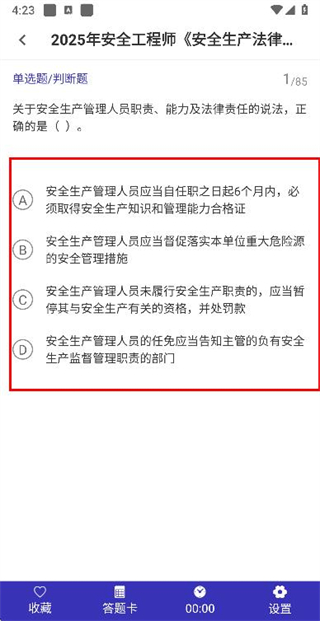 界面操作简洁直观,支持利用碎片化时间刷题,不管是在通勤路上还是休息的空档,都能随时进行学习,适配备考用户多样化的学习场景。