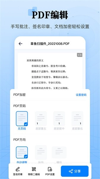 3、快速扫描功能:使用手机拍摄文档,可自动清除杂乱背景,生成高清图片。