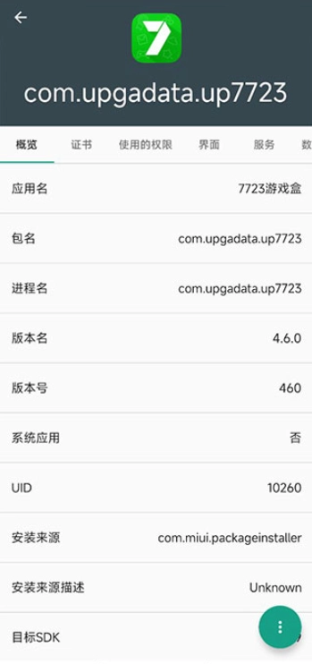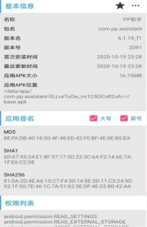 2、打开应用后,你能够查看该应用的详细信息,像应用名称、应用包名、版本编号、安装来源等内容都包含在内。