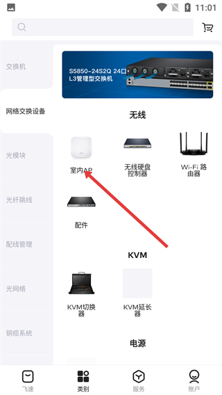 2、进入类别页面后,选择【室内AP】选项,此类别归属于网络交换设备里的无线设备分类。