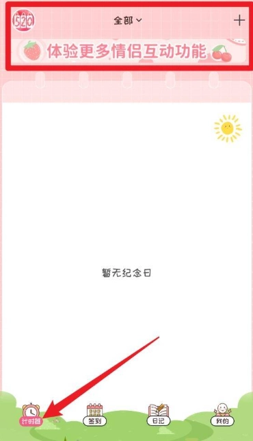 3、进入计时器首页后,可添加并管理恋爱纪念日,还能体验更多情侣互动功能。