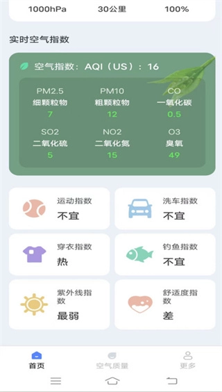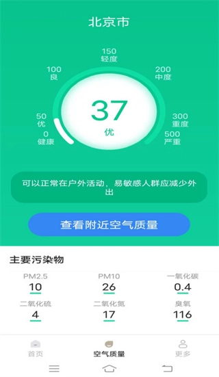 4、点击“空气质量”选项,即可查看当地空气中各类污染物的精准监测数据,便于用户轻松浏览了解。