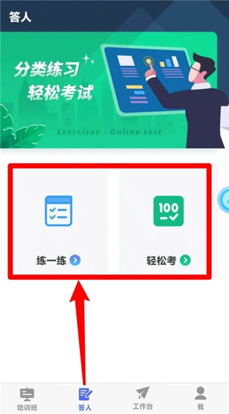 3.答人页面包含“练一练”和“轻松考”两个板块,用户可依据自身需求选择对应的练习模式。