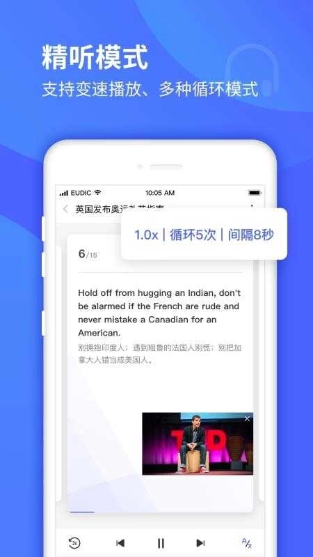 对于听不懂的片段,你可以重复播放,这里具备循环播放英语听力音频的功能。