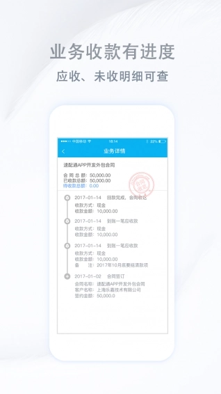 为了让用户使用更便捷,我们实现了合同管理的最大化便利:无需繁琐注册即可直接使用,合同可随身携带,随时随地查看应收账款,并能在最合适的时间提醒收款。