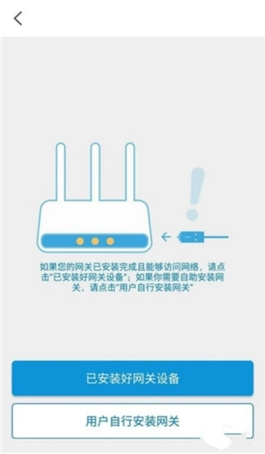 3、进入后点击图示的“已安装好网关设备”,绑定成功后返回首页。