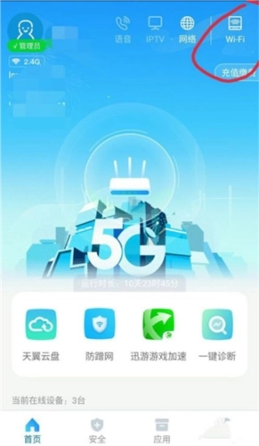 4、接着回到首页,找到界面右上角标注的“Wi-Fi”选项。