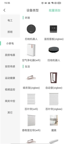 进入添加设备类型的界面后,你可以根据自身需求进行选择,这里我为大家选择的是扫地机器人。