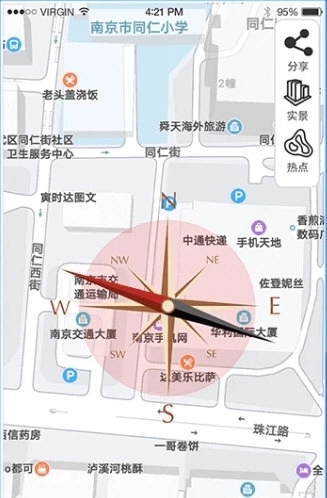 6、指南针和实景地图结合:提高定位精准度,帮助用户在不同地方快速定位。