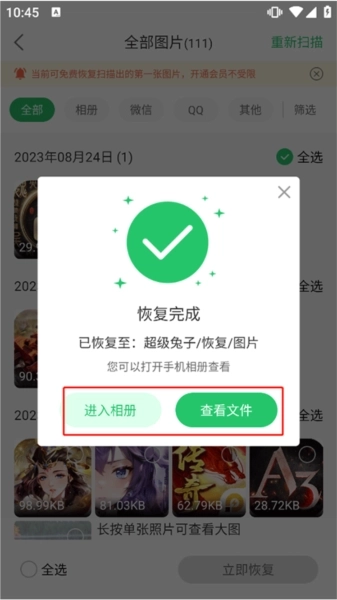 3、恢复操作完成后,你可以通过点击【查看文件】按钮来找到那些已经成功恢复的照片。