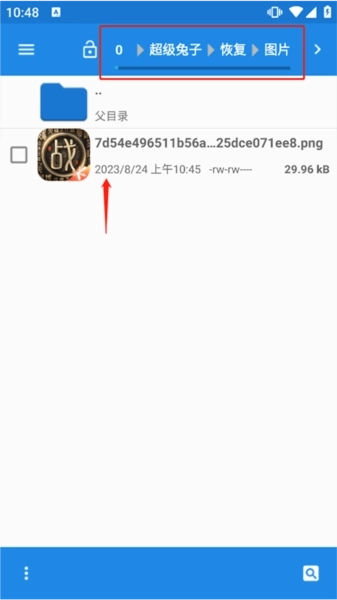 4、最后按照超级兔子的提示操作,依次点击打开文件管理器,进入内部储存设备,找到超级兔子文件夹,再打开其中的图片子文件夹。