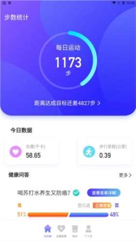 2、可免费查看每日步数报告,浏览精彩视频,记录个人健康睡眠情况。