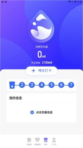 3、在“喝水”界面还能记录自己每天水分的摄取量。