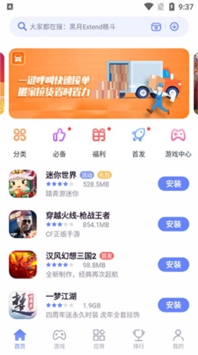 2、之后就是首页,这里是一些热门的游戏或应用;