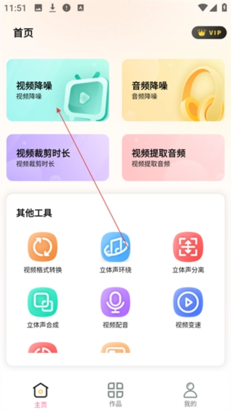 1、打开首页后,点击【视频降噪】选项,即可进入视频选择页面。