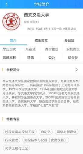 能够查询2700多所院校的历年录取分数线、院校详细信息以及专业介绍。