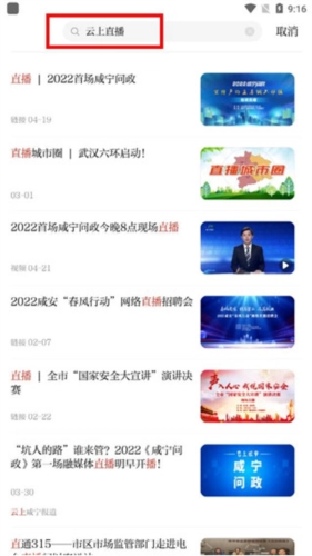 2、云上咸宁具备智能搜索功能,用户只需输入关键词,就能快速找到想要的内容。