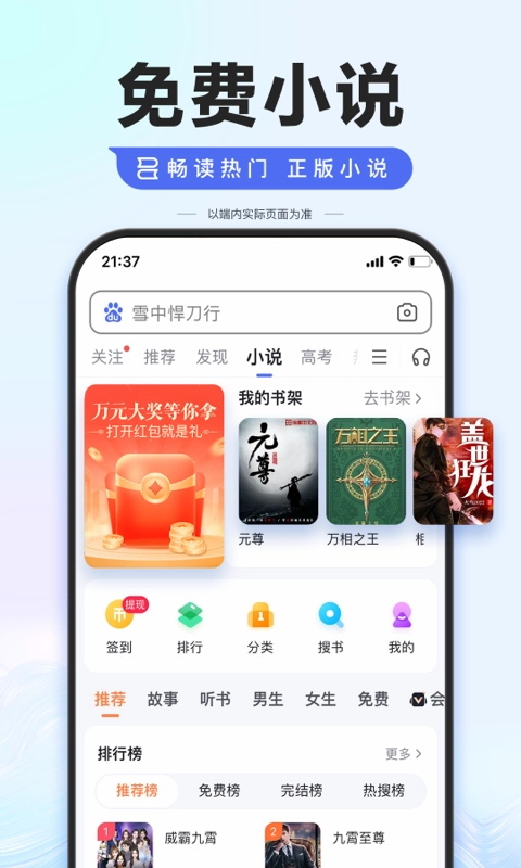 1、手机百度凭借百度顶尖的搜索引擎技术,力求让网民更轻松地获取信息。