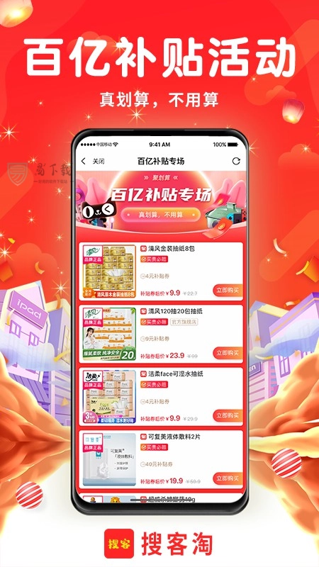 搜客淘是一款能帮用户买到心仪商品的购物软件,无需出门就能将海量好物带回家,让用户购物时省钱省心。平台提供限时加码的优质产品,参与更多优惠活动即可享受折扣,所有商品质量均有保障,完善的售后与客服体系确保高质量购物体验。此外还有数百亿补贴活动和限时尖峰福利等你体验,无论你想买什么这里都能找到,更有快速配送到家服务。想要买到心仪商品,就快来12365网搜客淘吧!
