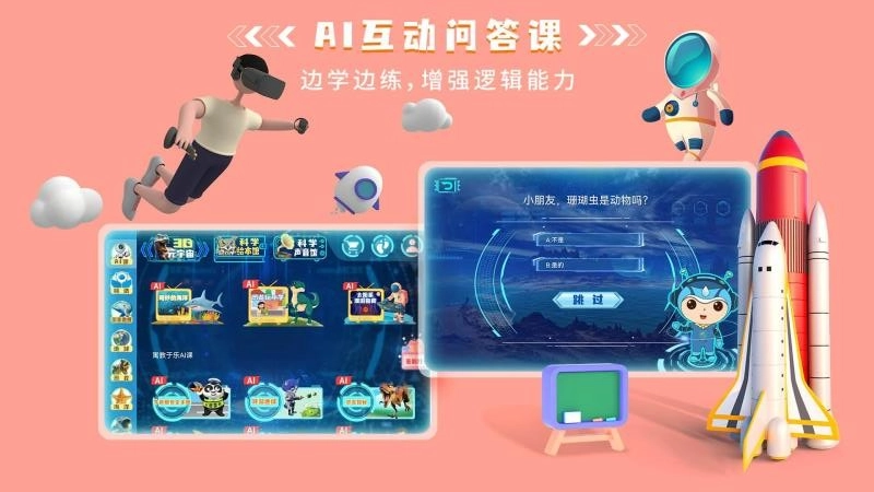 2、借助AR技术,把三维立体模型整合到学习内容里,既能满足儿童的好奇心,又能提升学习效果。