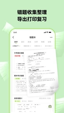 错题组卷功能:能够帮你把错题整合生成试卷,让你更高效地定位错题并完成订正。你可以随时开展练习,还能获得实时的批改反馈,正确率则是衡量你进步的关键依据。