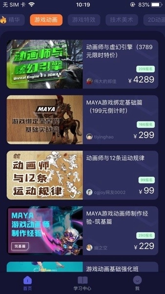 1、cgjoy课堂专注于游戏特效、游戏动画、游戏模型、游戏原画、游戏UI等方向的职业在线课程;