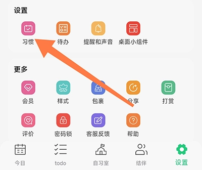 1、从底部菜单栏进入小光芒习惯学院的设置版块,接着点击习惯选项;