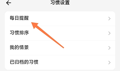 2、进入习惯设置,点击每日提醒;