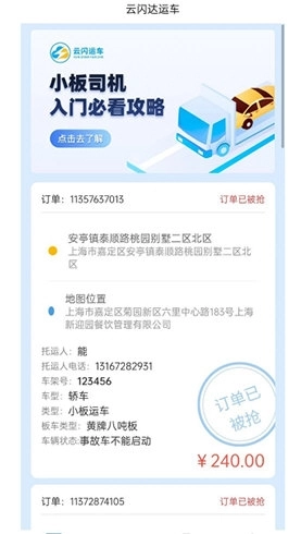 通过后就能在线接收各类托运订单,这样一来可以节省个人在线下等待订单所耗费的时间