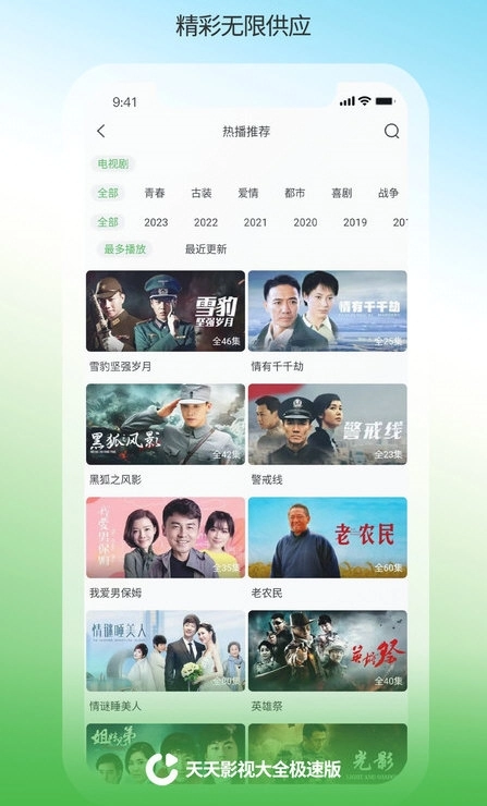 天天影视大全极速版是一款免费影视播放软件,拥有超清画质与简洁清爽的界面,能让用户轻松开启观影之旅,畅享海量影视剧资源。无论是电视剧还是电影,最新影片资源都能在这里找到。平台全天24小时与全网同步更新资源,确保用户总能获取最新内容,持续优化观影体验。
