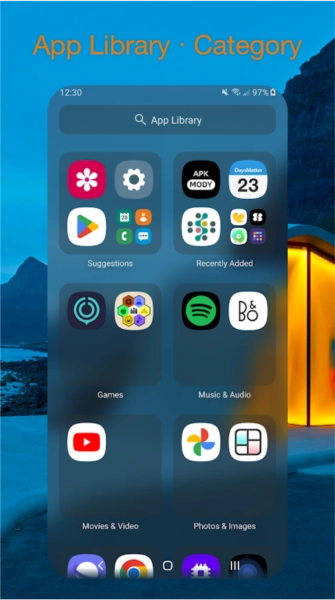对应用程序抽屉提不起兴趣?不妨试试应用程序库,它会把应用程序按类别整理好,还能依据使用频率自动调整应用程序的排序。