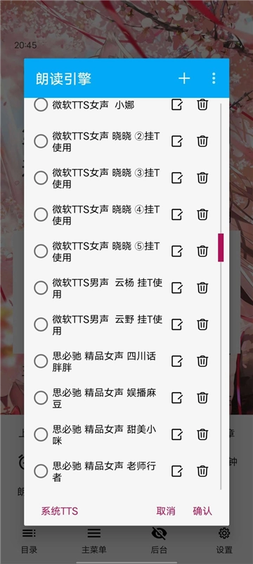 你还需要配合使用具备朗读功能的小说软件,像阅读、搜书大师这类都可以。在小说软件的阅读界面里,点击朗读按钮,就能调用微软晓晓来读小说了。它没有时长和VIP的限制,发音甚至比收费的讯飞还要自然。