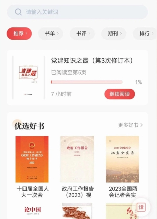 电子书城:整合了《求是》《世界知识》《世界博览》等期刊以及合作出版社的电子书资源,能够按照题材、作者、出版社等多个维度进行筛选,同时具备全文搜索功能,用户可以借助关键词迅速找到想要的内容。