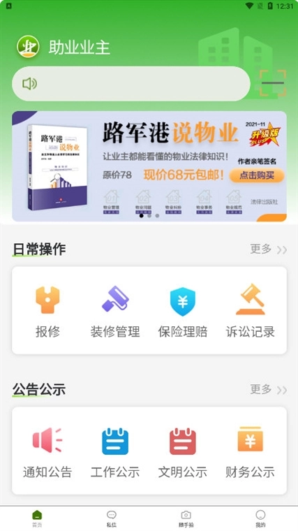 公告通知:物业发布的停水停电、社区活动等各类通知将实时推送,以便业主能第一时间获取相关信息。