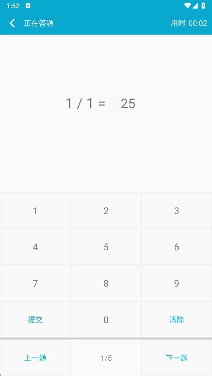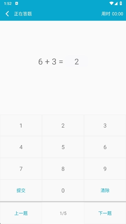 数字键盘输入答案后点击“提交”