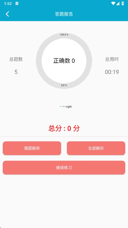 练习结束后自动弹出成绩单,包含: